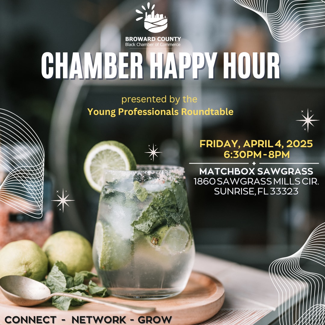 The Chamber's Young Professional Roundtable is hosting a Happy Hour! Come get connected to members, network to grow your business, and make new friends.