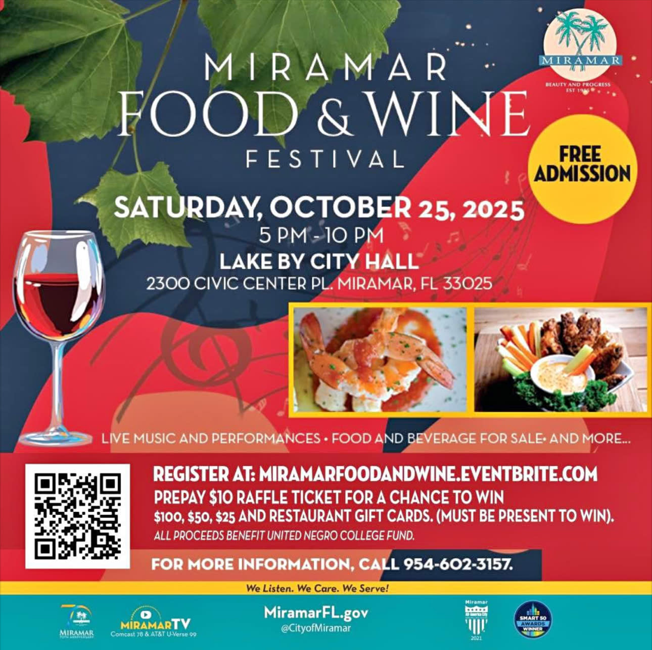 Register here - https://www.miramarfl.gov/Events/Food-Wine-Festival